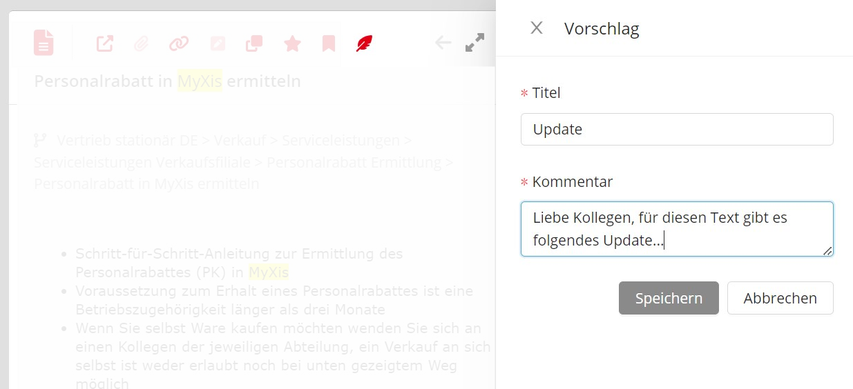 Ob neustes Update, fehlende Infos oder einfach ein fehlendes Komma - du kannst in jedem Beitrag Vorschläge hinterlassen, die direkt an die für den Beitrag zuständige Person weitergeleitet werden.