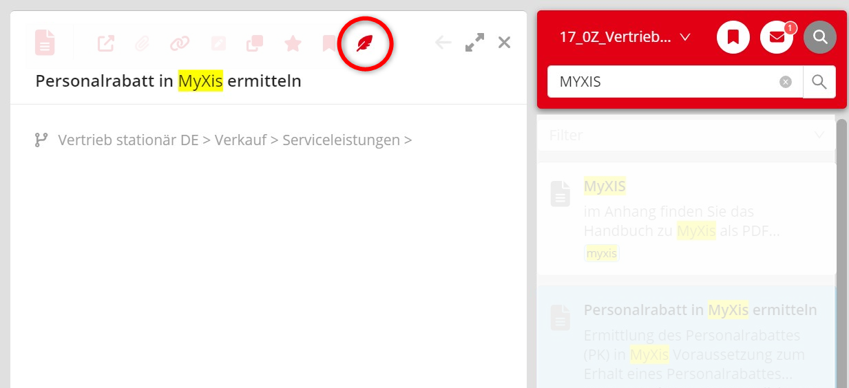 Im MyXPERT-Integrator findest du die Vorschlagsfunktion unter dem Feder-Symbol: